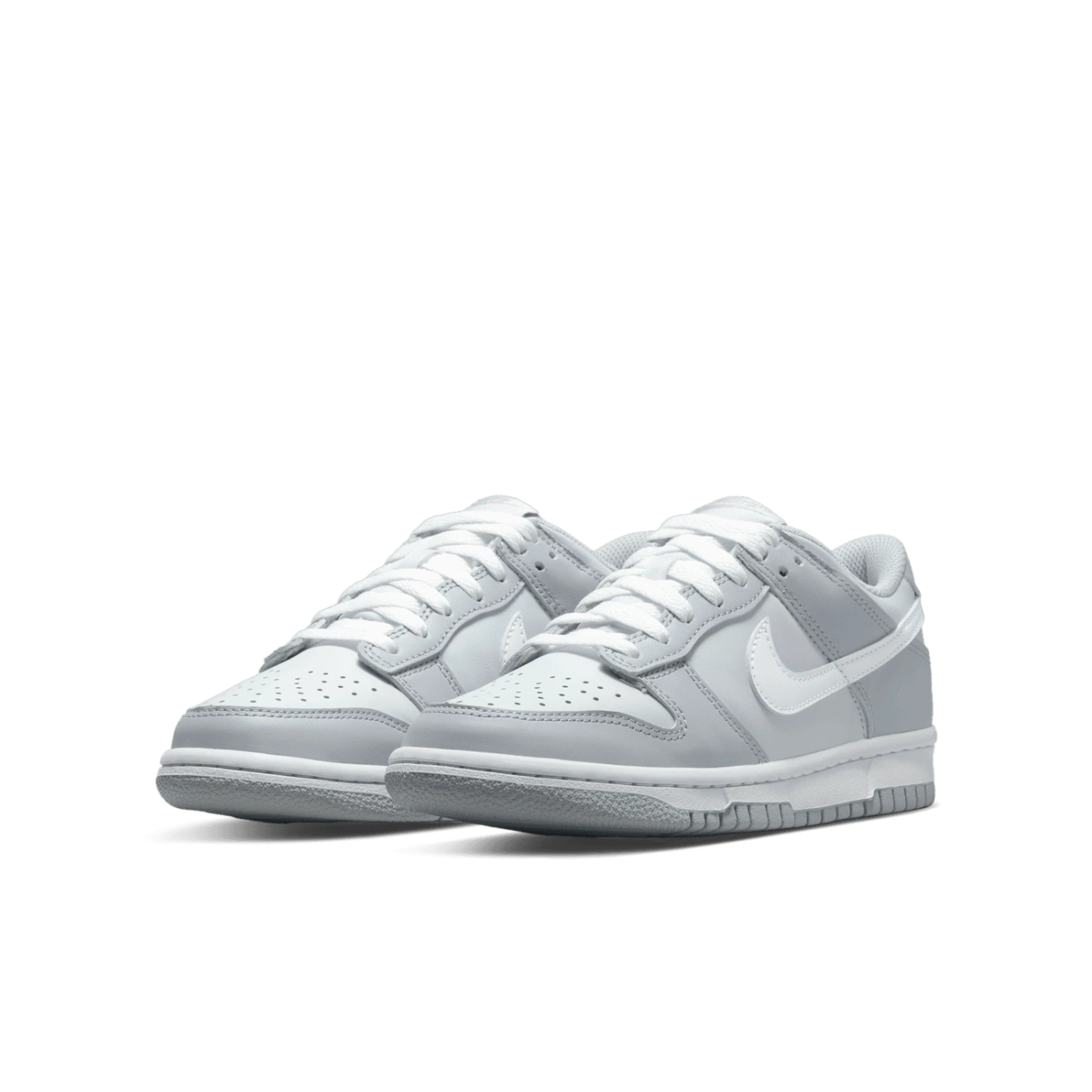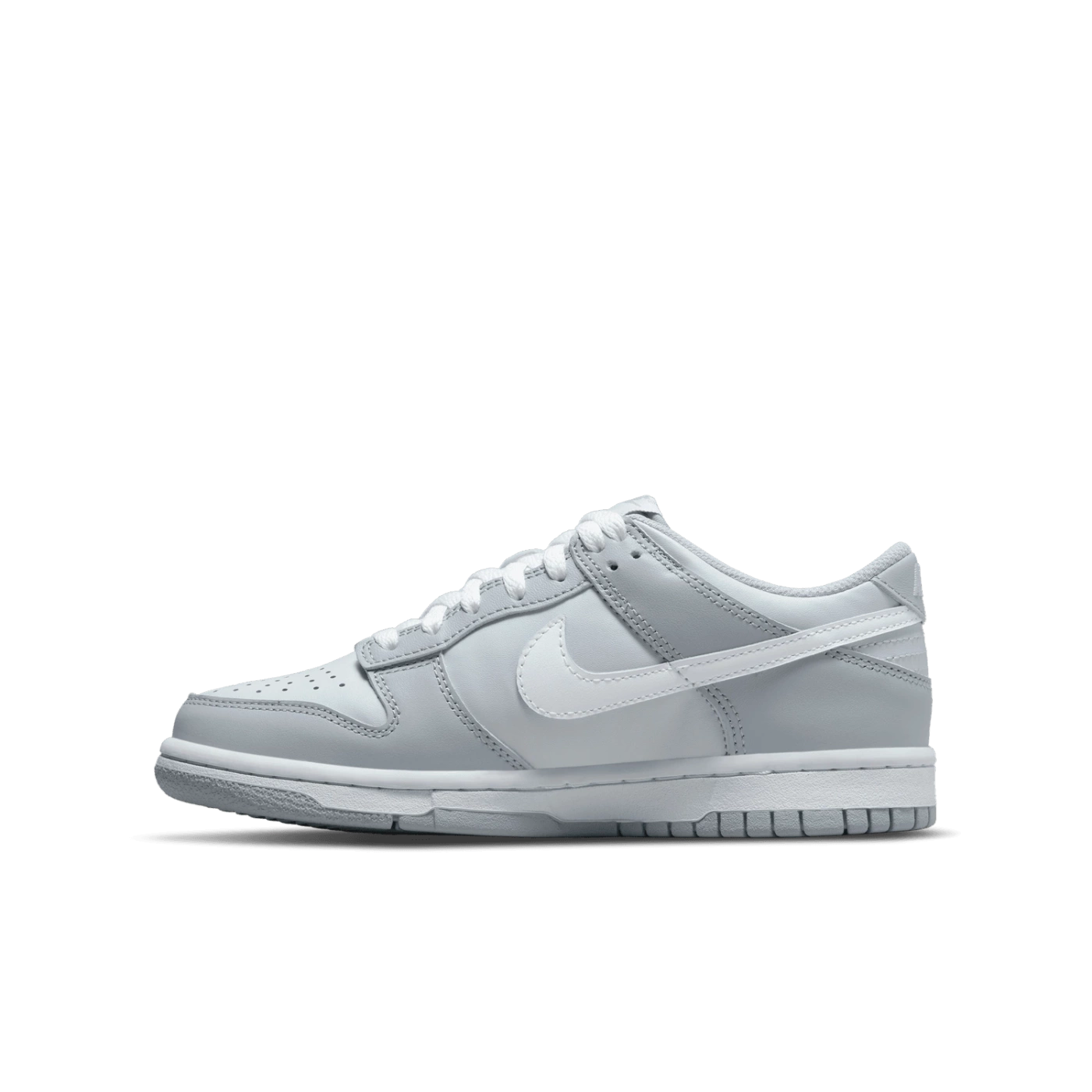 Nike Dunk Low GS DH9765-001 – Jugend-Sneaker in Grautönen mit weißem Swoosh. Stilvoll, bequem und zeitlos.